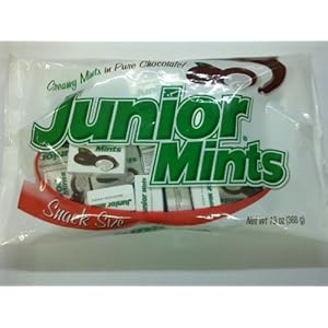 - The classic Junior Mint in a snack size box. Creamy Mints in pure chocolate! Each 13oz bag has about 20 boxes. These are great to hand out to those trick-or-treaters!