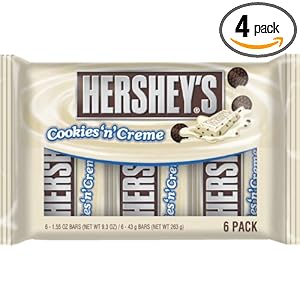 you want to buy Hershey's Cookies 'n' Creme Bars, 9.3-Ounce Packages (Pack of 4),yes ..! you comes at the right place. you can get special discount for Hershey's Cookies 'n' Creme Bars, 9.3-Ounce Packages (Pack of 4) in amazon.You can choose to buy a product and Hershey's Cookies 'n' Creme Bars, 9.3-Ounce Packages (Pack of 4) at the Best Price Online with Secure Transaction in amazon...