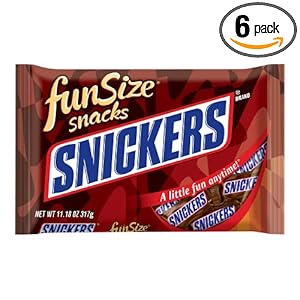 you want to buy Snickers Fun Size Candy, 11.18-Ounce Packages (Pack of 6),yes ..! you comes at the right place. you can get special discount for Snickers Fun Size Candy, 11.18-Ounce Packages (Pack of 6) in amazon.You can choose to buy a product and Snickers Fun Size Candy, 11.18-Ounce Packages (Pack of 6) at the Best Price Online with Secure Transaction in amazon...